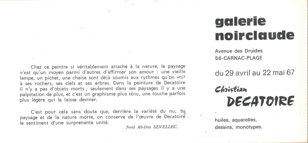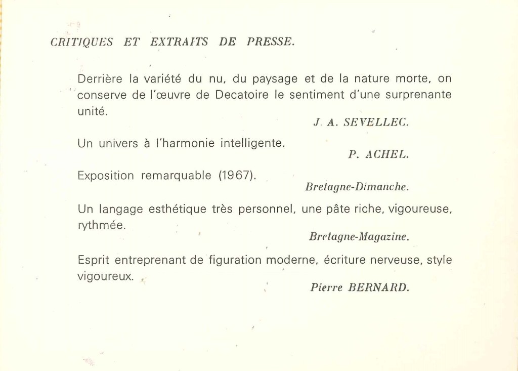Œuvres de Christian Décatoire artiste breton – Vannes, 1933-1969