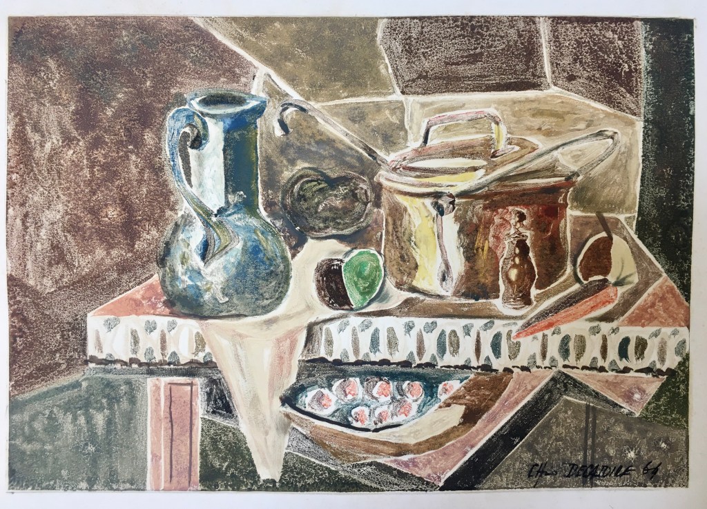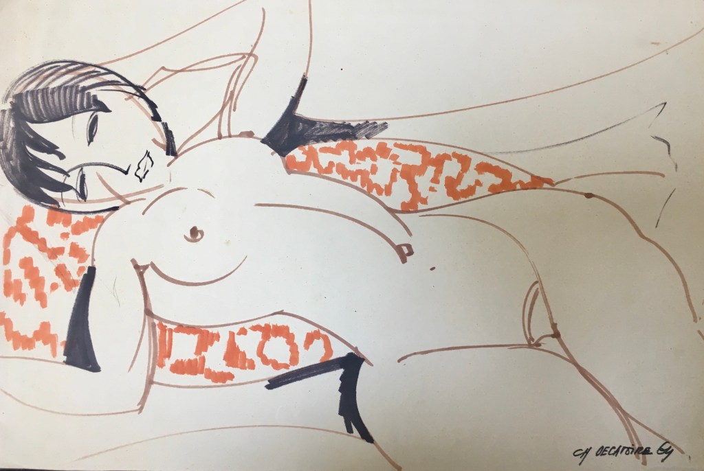 Lors de rangements dus à la vente de la maison qui fut celle de mes parents, j’ai remis la main sur cette série hétéroclite, d’années éloignées les unes autres, des « œuvres » de l’étudiant à l’école Claude Bernard à Paris ou des travaux plus tardifs de la fin des années 60 qui furent ses années les plus abondantes en créations multiples…