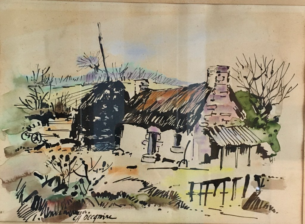 Bonne surprise en ce pluvieux été 2023 ! Un mail dans ma boîte via ce blog d’un ancien élève de mon père qui était « prof de dessin » comme on nommait à l’époque les professeurs d’arts plastique (au Lycée Jules Simon ou au lycée Lesage de vannes) : Il m’a envoyé cette petite encre de chine, un peu passée qui fait partie d’une série. Merci à Joël !