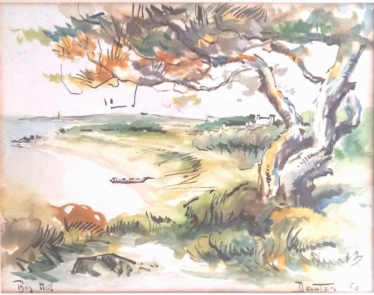 Voilà encore des photos envoyées par mon cousin Pascal DECATOIRE : il s’agit d’œuvres « de jeunesse », enfin , si on peut parler ainsi d’œuvres d’un artiste disparu à 35 ans… Les photos ci-dessous ne sont pas de bonne qualité mais on peut voir que plusieurs « techniques » sont ici employées : encre de chine « aquarellée » pour la première, gouaches plus ou moins colorées pour les autres paysages marins et pour finir le croquis d’un bois à l’encre de chine style que je n’avais jamais vu.